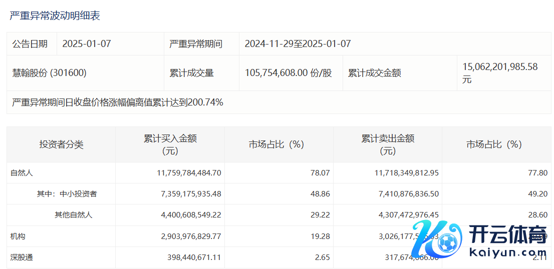 深交所:慧翰股份27个往复日累涨193.4% 当然东谈主买入占比78.07%开云kaiyun官方网站深交所:慧翰股份27个往复日累涨193.4% 当然东谈主买入占比78.07%