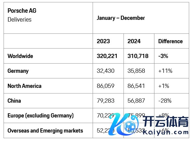 保时捷2024年群众委派31.07万辆汽车 同比减少3%保时捷2024年群众委派31.07万辆汽车 同比减少3%