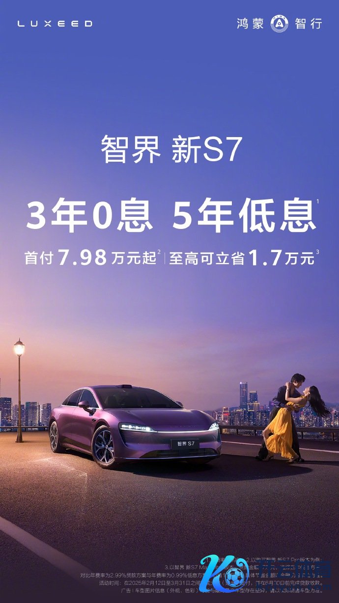IT之家 2 月 12 日音信,鸿蒙智行当天文牍,智界新 S7 上线 3 年 0 息、5 年低息限时金融计策开云kaiyun,即日起购车首付仅需 7.98 万元起。