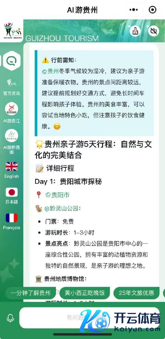 看成中国首个省级全域灵敏旅游平台,“AI游贵州”发布之后便凭借其宏大的功能受到等闲暖热,在春节假期时刻就已为广大赴贵州旅行的用户提供了个性化做事,这次又在上线仅不到一个月通过接入DeepSeek大模子隔断做事升级。升级后的“AI游贵州”,不仅粗豪让用户“自若双手”,无须糜掷多量时辰和元气心灵作念旅行主义,也无需在广阔的景点、货仓、交通神气中进行筛选和组合。(罗宁)
