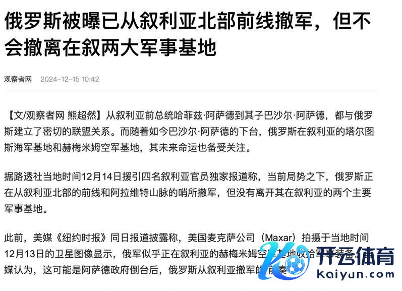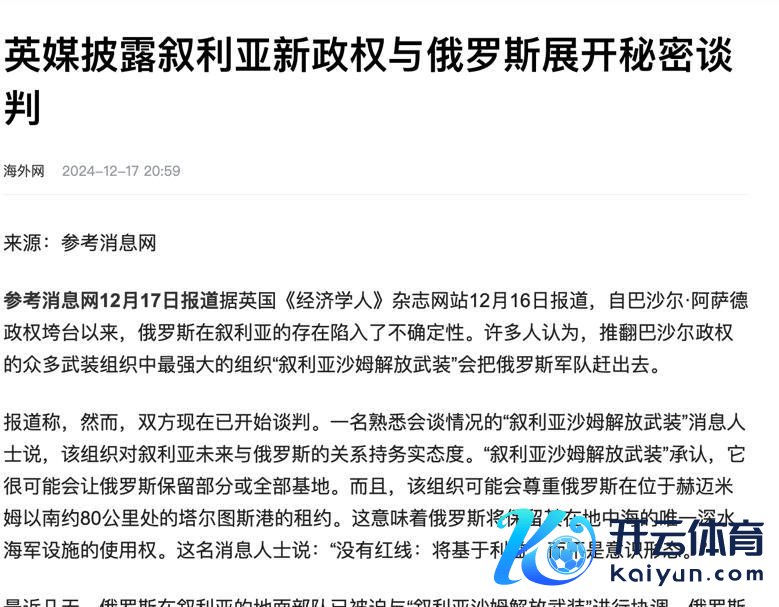 2024年12月16日,英国媒体公论显现,叙利亚新政权与俄罗斯张开了巧妙谈判,意图部分保留俄罗斯在叙利亚的军事基地。