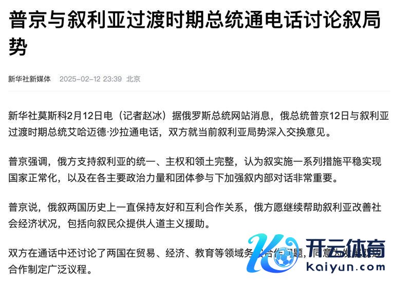 经过普京与朱拉尼的对话后,叙利亚通信社的报谈虽说起了两东谈主通话,却未明确表态达成任何共鸣。